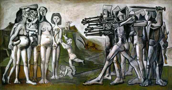 이 작품은 1951년 1월 완성한 작품으로 전쟁의 참상과 비극을 예술을 통해 고발한 '게르니카(1937)'와 '시체안치소(1944-1945)와 더불어 피카소 반전에술 3대 걸작으로 일컬어지는 작품입니다.