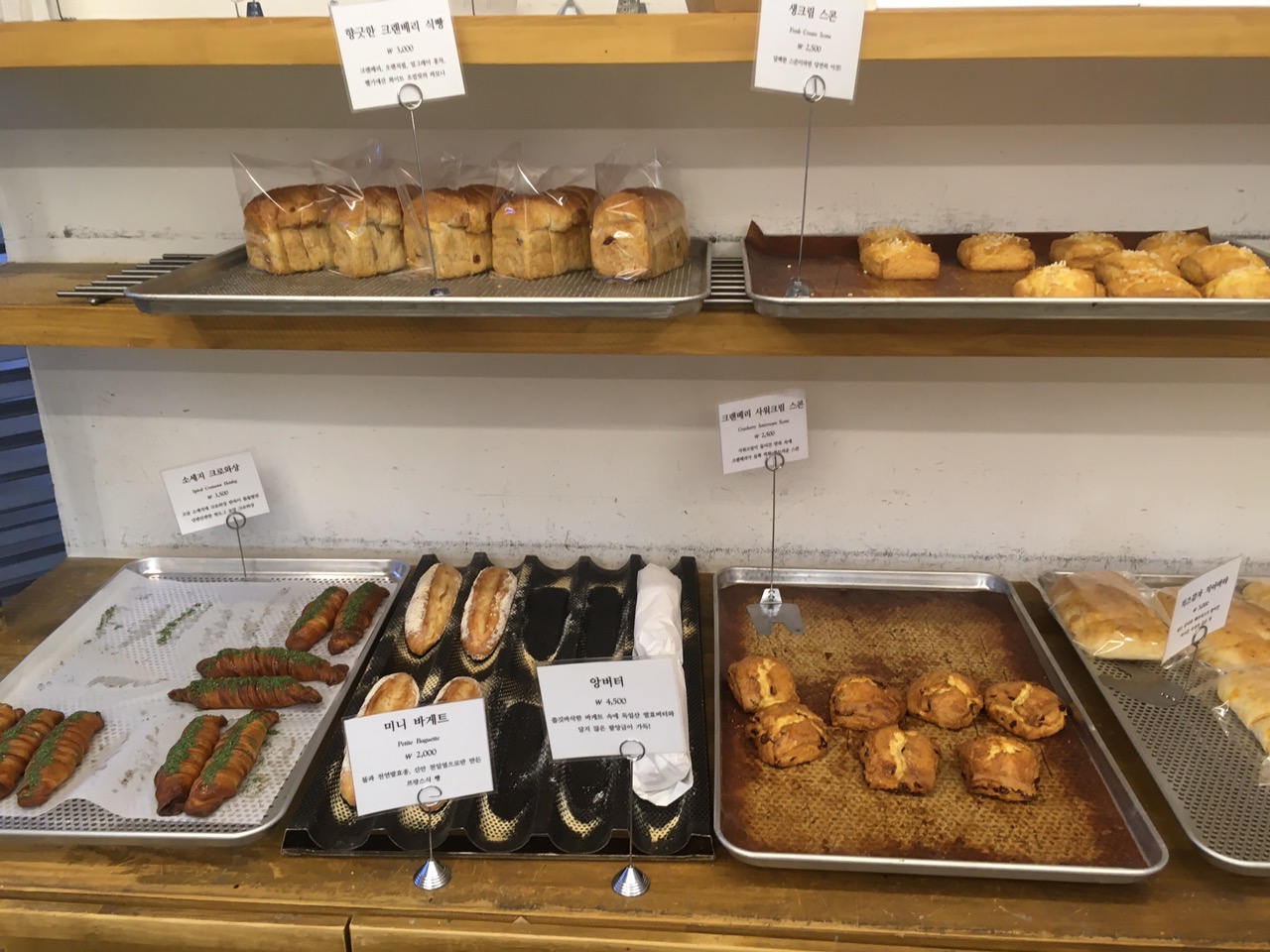 카우터 바로 옆 벽면에는 가장 많은 빵의 종류가 있는데요. 제가 개인적으로 좋아하는 치아바타에서부터 식빵, 스콘까지 너무 맛있는 빵들이 많아서 선택하는 데 무척 고민이 되었답니다.