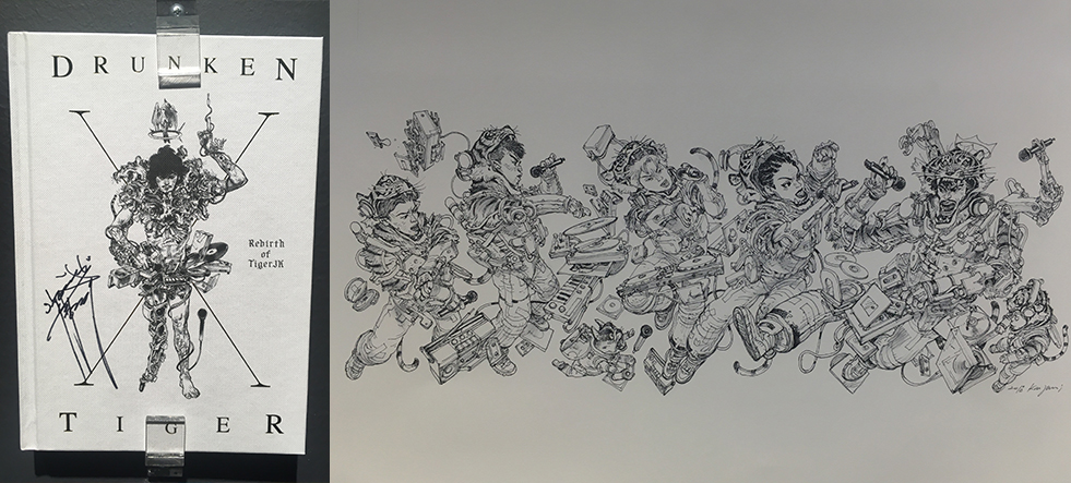드렁큰 타이거의 마지막 앨범이자 데뷔 20주년을 기념하여 발매한 정규 10집과 협업한 작품인데요. 타이거 JK를 상징하는 마이크, CD, LP, 호랑이 등을 조합해 리듬감 넘치게 화면을 구성한 것이 돋보입니다.