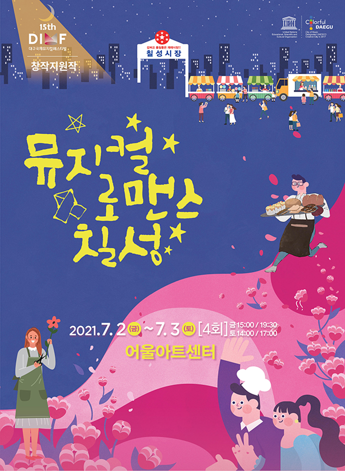 사실상 제가 마지막으로 본 창작지원작은 바로 뮤지컬 <로맨스 칠성>이라는 작품인데요. 대구의 대표 전통시장인 칠성시장을 배경으로 한 로맨틱 코미디입니다.