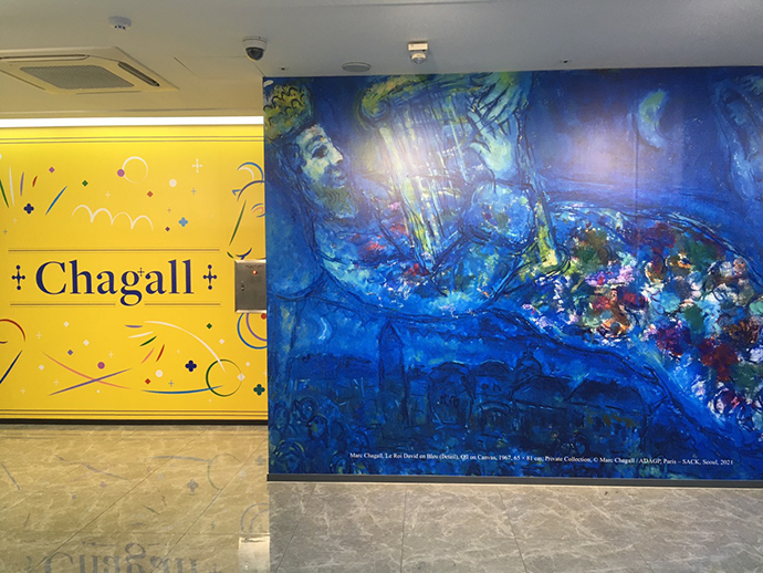이전에도 국내에서 여러 차례 샤갈 전시가 몇 번 진행된 적이 있지만, 이번 전시는 특별하게 그간 단독으로 다뤄지지 않았던 '성서'라는 주제와 더불어 샤갈 유족이 소장하고 있는 <강기슭에서의 부활>, <푸른 다윗 왕>등 유화, 과슈를 포함한 19점의 명작과 4m에 육박하는 대형 태피스트리 2점과 독일 소장품 등 총 220여점의 오리지널 작품이 공개된다고 하여 궁금증을 불러일으키더라구요.