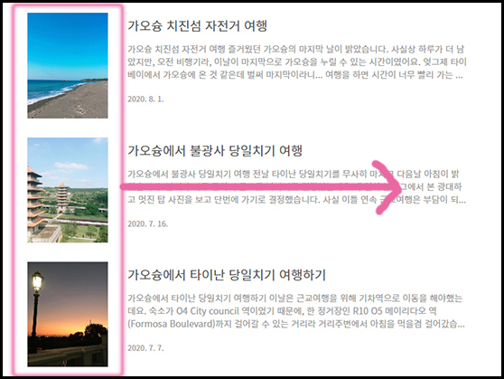 이렇게 최종적으로 왼쪽에서 오른쪽으로 썸네일 이미지의 위치를 간단하게 변경해보았습니다. 굉장히 간단한 코드 수정이지만, 왼쪽에서 오른쪽으로 이미지가 옮겨지다보니 시각적인 차이가 크게 느껴지네요.
