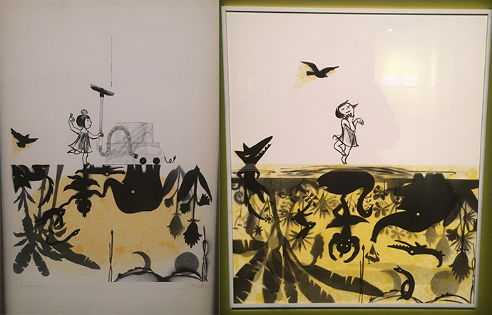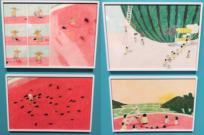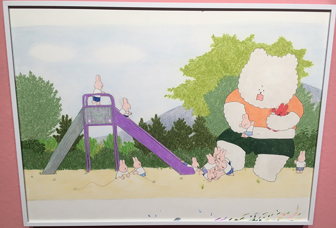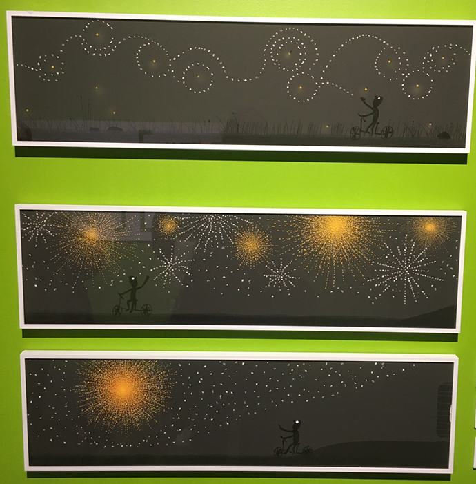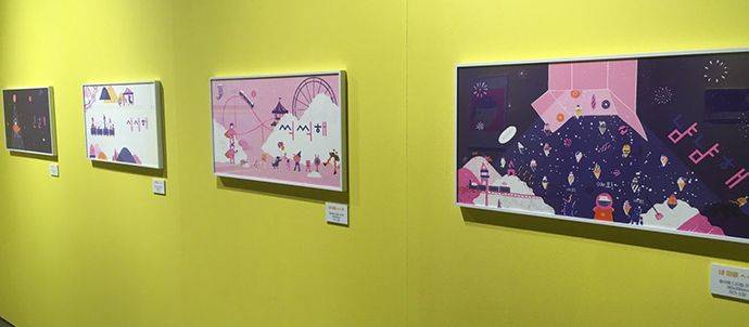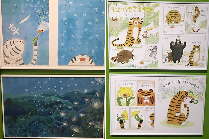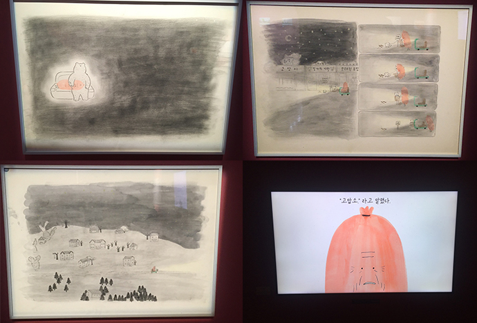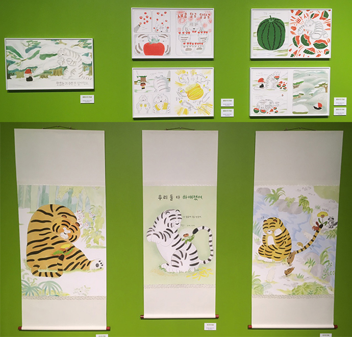 주로 디지털로 작업하시기 때문에 그림책 원화는 프린트되어 전시되어 있었는데요.