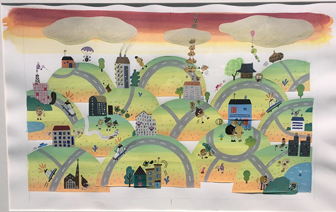 첫번 째 전시관에서 맞이한 그림은 윤지회 작가의 <우주로 간 김땅콩> 그림책의 원화가 걸려있었는데요.