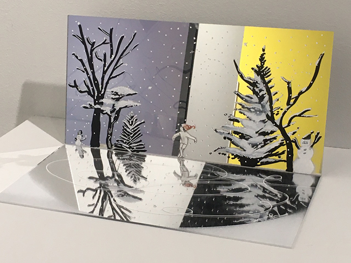 독특하게 유리에 프린팅 된 그림. 유리가 비춰셔 그런지 꼭 빙판에서 타는 것 같은 느낌이 들어요.