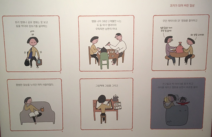 매일 끔찍한 병마와 싸우며 느끼는 여러 생각들이 귀여운 카툰형식으로 담겨있는데, 읽으면서 마음이 아프더라구요.
