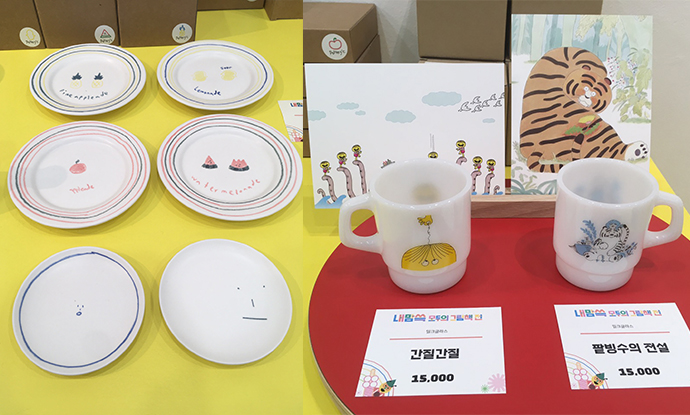 아니 저 맨 아래 접시 너무 귀엽지 않습니다. 여백의 미란 바로 저런 것일지도...ㅎㅎ 생각보다 일러스트가 들어가서 그런가 굿즈 단가가 높았어요.(그래서 사람들이 없었나...😓)