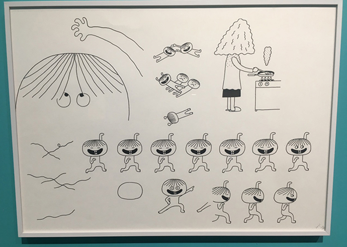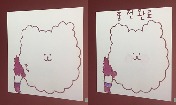 완성된 귀여운 캐릭터로만 봤을 때는 금방 슥슥 그렸을 것 같은 유쾌함이 돋보이지만, 알고보면 이렇게 많이 다양하게 스케치해보고 연습해보셨다는 것을 이번 전시에서 알 수 있었는데요.