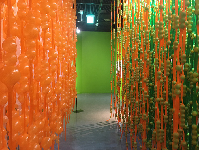 수박 풀장 외에 한쪽에는 풍선아트같은 설치미술 작품이 전시되어 있었는데요. <평행정원>이라는 제목의 작품이였어요.