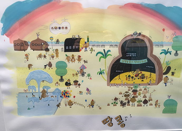 스케치만으로도 작가 특유의 유쾌함이 잘 느껴집니다. 그나저나 똑같은 포즈로 있는 이 아이들 너무 귀엽지 않나요?