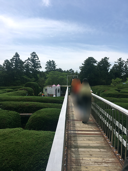 멀리보이는 중간다리. 아까 오를 때는 몰랐는데, 이렇게 보니 참 이쁘네요.🥰 비온 뒤 개어서 하늘도 파랗고 쨍쨍여서 무척 날씨가 좋았습니다. 덕분에 기분 좋게 미로 체험을 할 수 있었던 것 같아요.