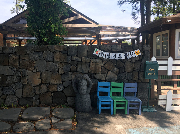 김녕미로공원 앞에는 이렇게 귀여운 의자와 손으로 하트를 만들고 있는 돌하르방. 여기 찍으시는 분들이 꽤 있으시더라구요. 저도 한번 찰칵해봅니다.😊