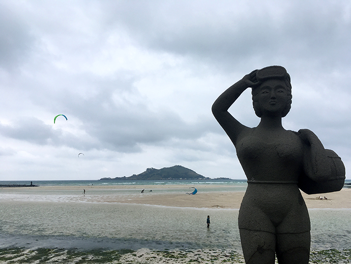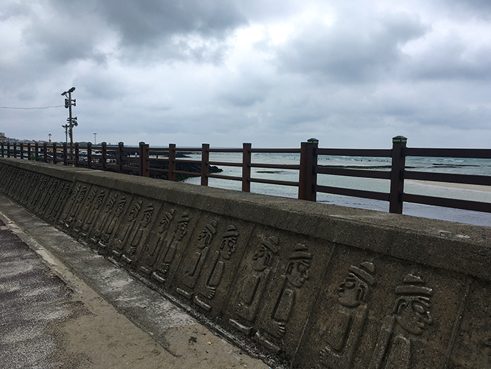 그땐 몰랐는데, 지금 보니 해수욕장 다리 아래 돌벽에 돌하르방이 새겨져 있는데 무척 귀엽더라구요.