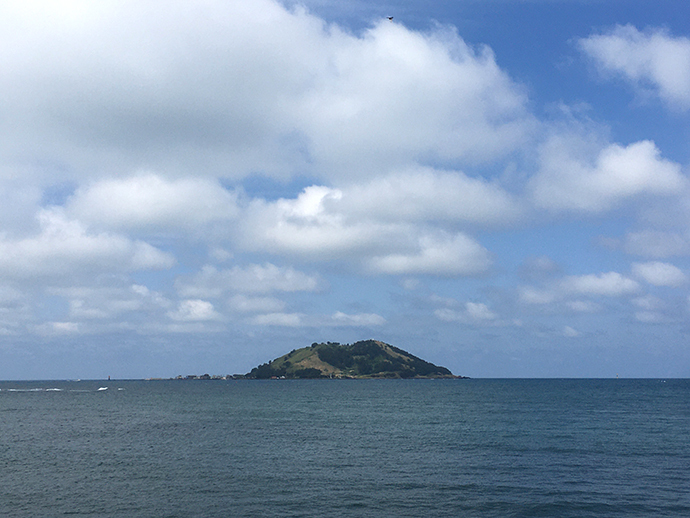 저 멀리 이쁜 섬도 보입니다. 오전에 기분 좋게 산책을 하고, 근처 유명한 맛집에서 맛있는 떡볶이와 튀김을 사왔어요.