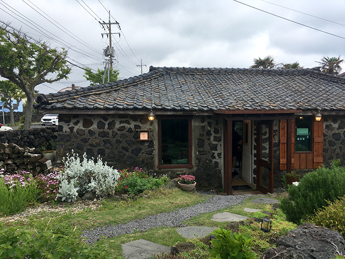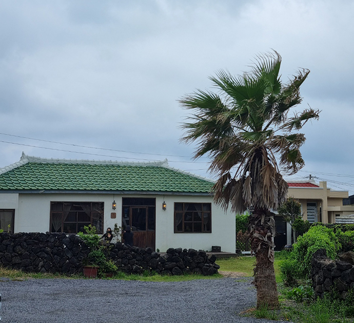 <연희>가 오래된 전통 돌담집이라고 하면, 현대식 제주집 모양의 또 다른 카페. 야자수와 함께 너른 마당이 참 매력적이였는데요. 왠지 인기가 많아보였어요.