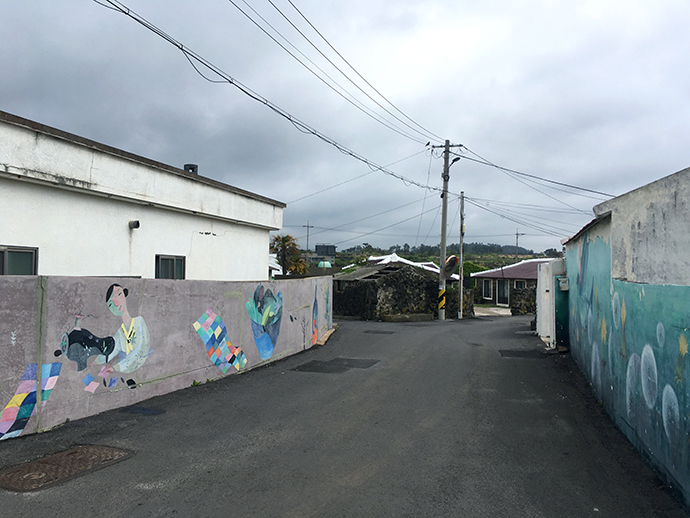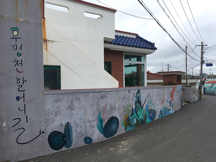많은 지역에 벽화마을을 구경다녀봤지만, 이 길의 벽화는 좀 더 제주스럽고(당연하겠지만) 독특한 조형미와 색감 조화가 매력적이였어요. 왠지 일러스트 작가가 그린 느낌이였는데요.