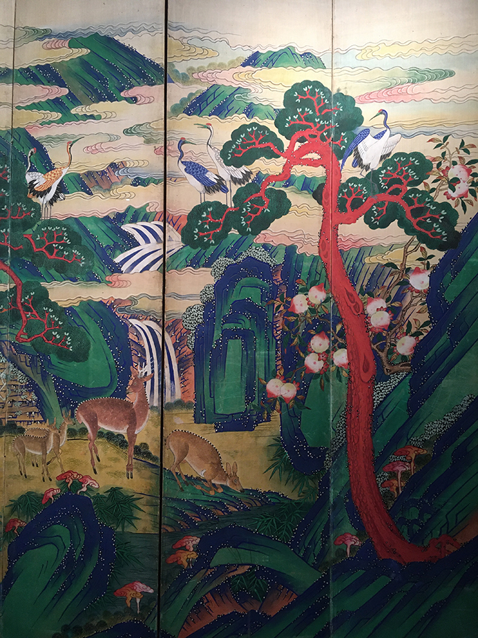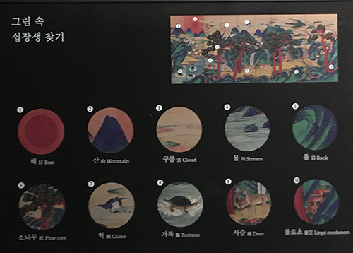 말로만 들어봤던 십장생도를 직접 보니 엄청 화려하고 선명한 것이 보기만 해도 생명력이 가득 느껴지는 에너지가 담겨진 작품이였습니다.