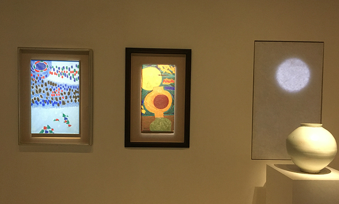 달항아리를 소재로 그린 김환기 화가의 작품과 함께 전시된 국립중앙박물관 소속 진짜 백자 달항아리. 미술관 공동 전시다 보니 이런 연계가 되는게 참 멋지다는 생각이 드네요.👍
