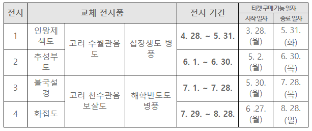 이 작품은 6월까지만 전시되고, 또 다른 작품으로 바뀌기 때문에 혹여 보고싶으신 분들은 6월안에 꼭 보시길 바랍니다.(이후 작품은 위쪽에 소개해드린 표를 봐주세요.)