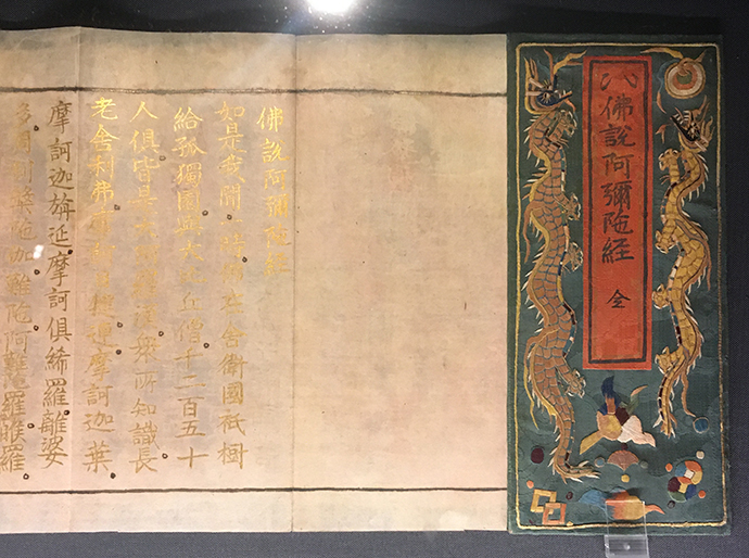 다양한 기록이 담긴 서첩이 있었는데요. 금빛으로 정갈하게 쓰여진 글씨가 무척 아름다웠고, 무엇보다 세밀한 자수가 놓인 표지가 무척 이쁘더라구요.