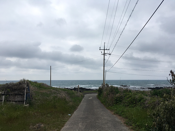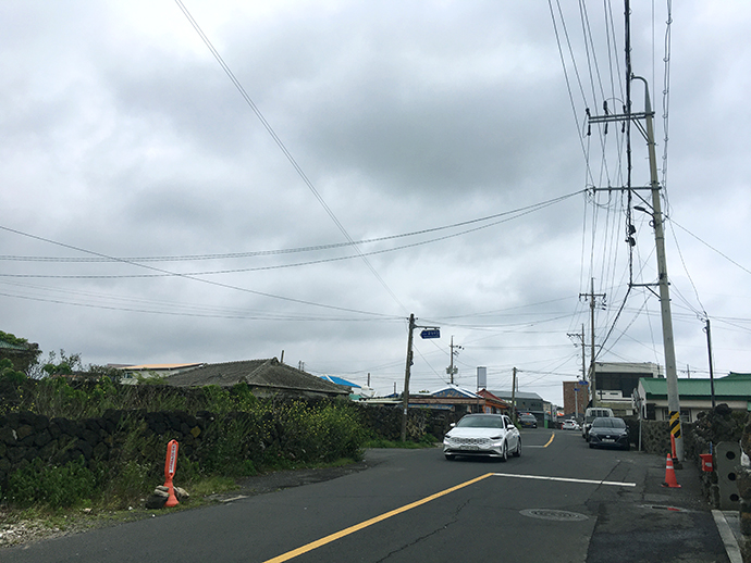 알고 보니 금능해변쪽에서 해변가로 이어지게 걸어갔어야했는데, 코스를 착각하고 큰 대로변으로 걷고 있었는데요. 대로변으로 걷다보니 뭔가 이상해서 봤더니 이렇게 히변가로 들어가는 샛길이 나오더라구요.