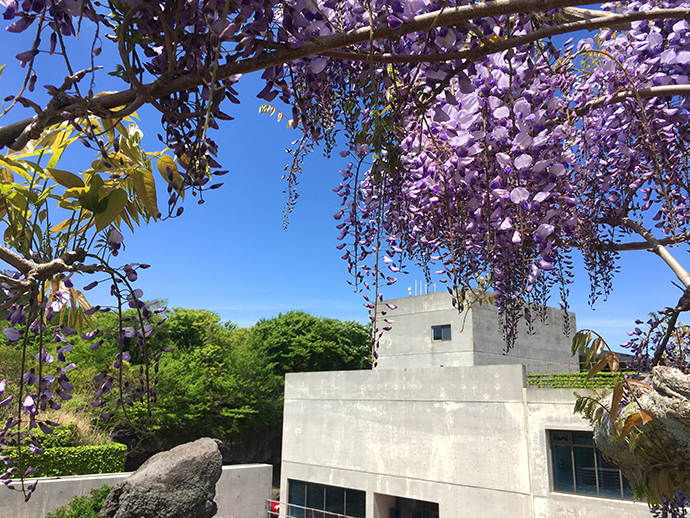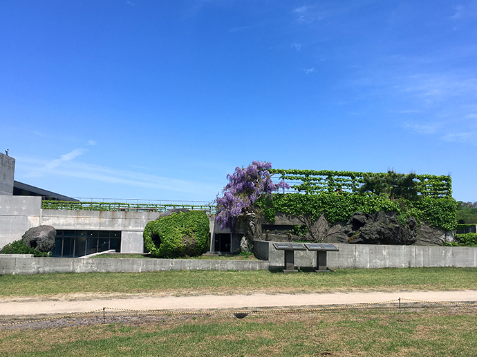 돌박물관 바깥은 이렇게 외벽콘트리드의 단조로운 건물 형태인데요. 곳곳에 덩쿨잎과 꽃들이 덮여 굉장히 자연친화적인 느낌이더라구요.