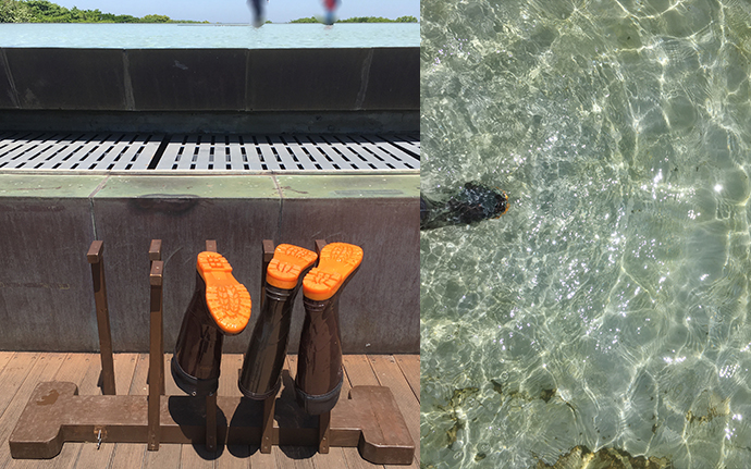 연못에 들어가기 전 입구에 마련된 무료 방수장화를 신고 들어가시면 되는데요. 물이 들어가는 경우가 많은지 저렇게 거꾸로 놓여있는 경우가 많더라구요.