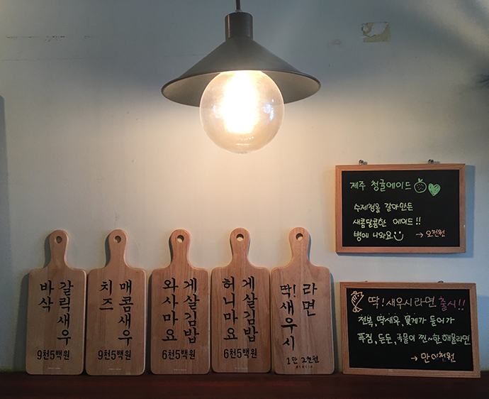 미니 나무 도마로 만든 메뉴판도 참 귀엽죠?!(완전 취향 저격😆)