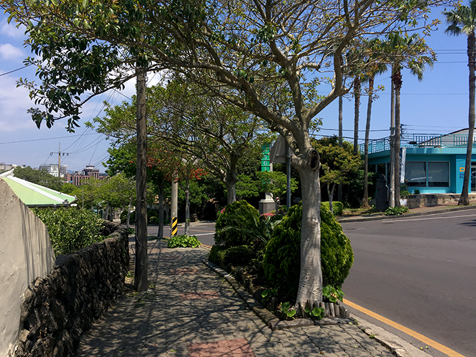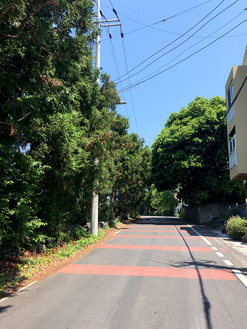 올라서니 다행히 그늘 구간이라 조금 시원하게 걸을 수 있었습니다. 지도상으로는 금방 갈 것 같았는데, 생각보다 신시가지에서 구서귀포까지 거리가 상당한 것 같아요.