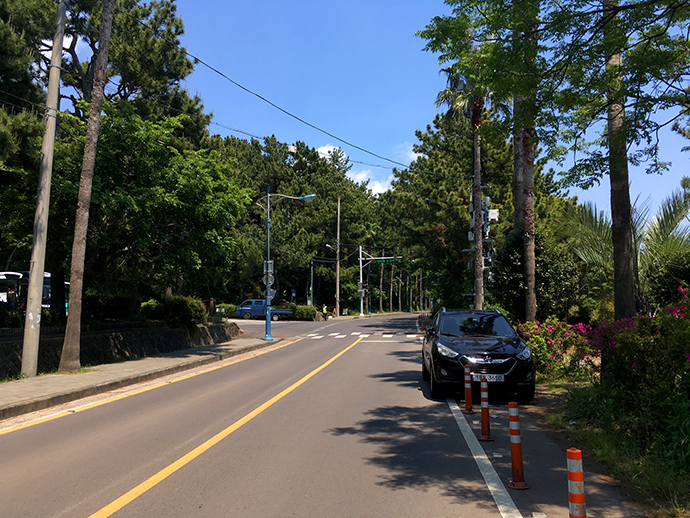 수봉로는 넘어 가다보니 한 쪽에는 야자수가 그리고 다른 쪽에는 쫙 펼쳐진 아름다운 바다가 정말 아름다운 경치를 이루고 있어서 정말 아름다웠어요.