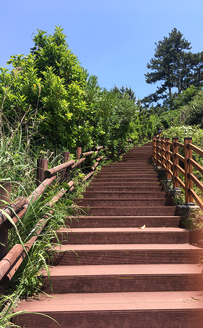 해안가를 쭉 걷다가 갑자기 등장하는 작은 산길...