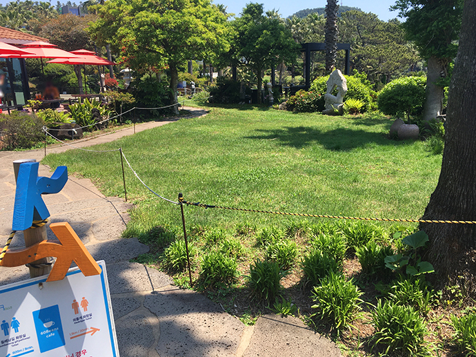 알고 보니 카페가 있었습니다. 별장은 아니고... 올레길 코스 중 하나이다 보니 사람들이 많이 들어오시는 여기저기 출입금지 또는 화장실 관련 안내문이 붙여있었습니다. 카페 이용객 외에는 여러 제약이 좀 있었습니다.