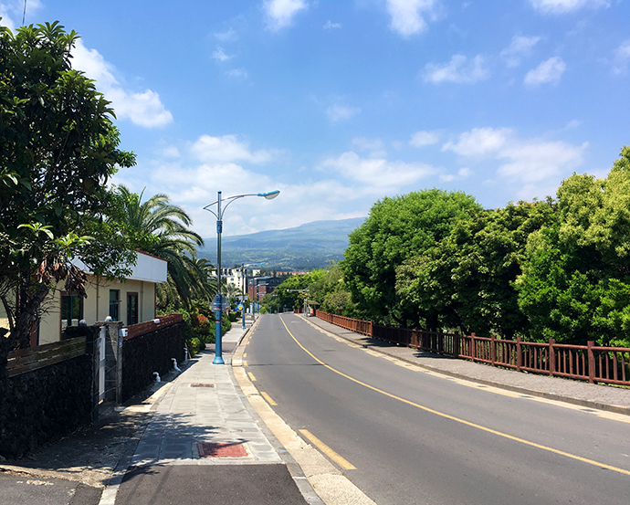 생각보다 가까운 느낌의 한라산이 보입니다. 마을에서 저렇게 큰 산이 보인다는게 무척 신기하네요.