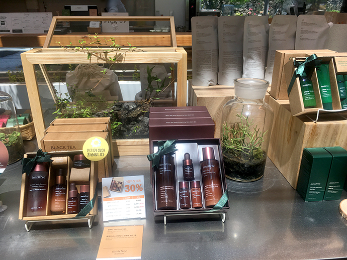 이곳에도 이니스프리 제품이 이쁘게 디피되어 있더라구요.