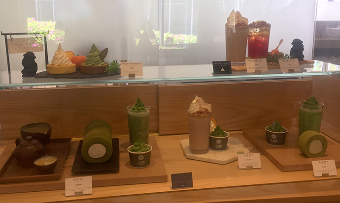다들 녹차 아이스크림 하나씩 들고 먹고 있었습니다. 혹시나 이곳에서만 파는 이색 메뉴가 있을까 시었는데, 실제 서울에서 파는 오설록 메뉴라 크게 다르지 않더라구요.(무슨 아이스티같은 것만 새롭게 판매)