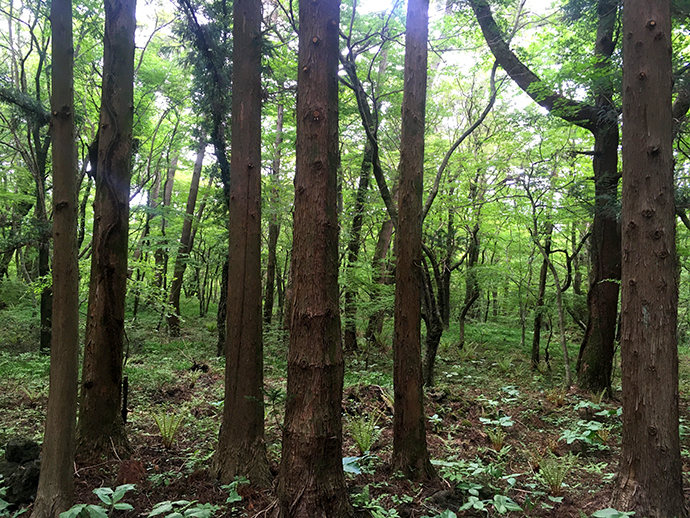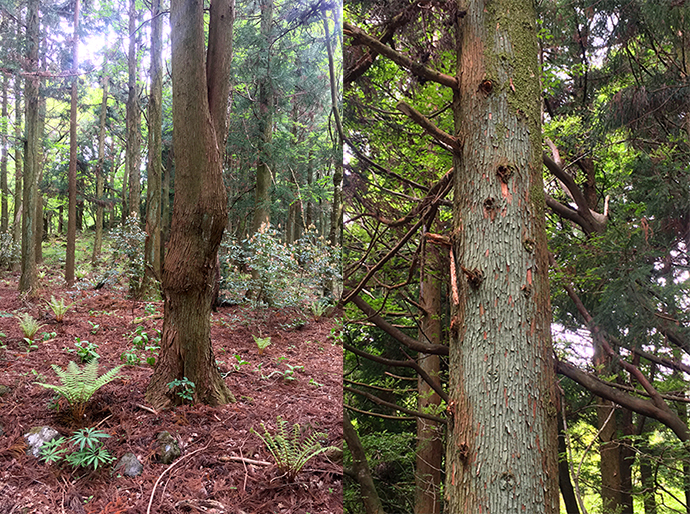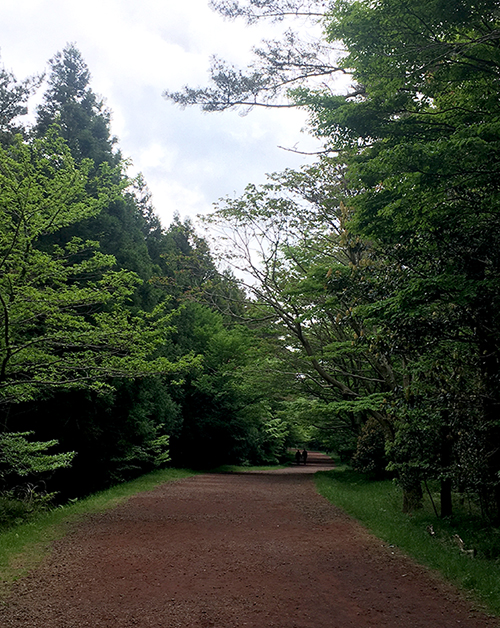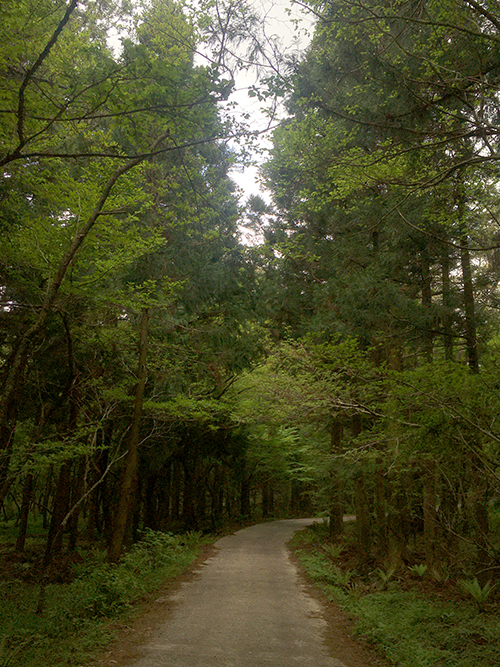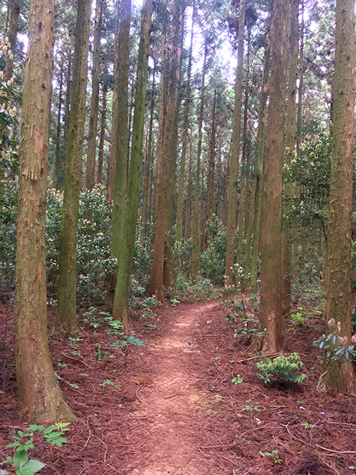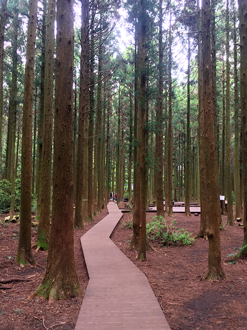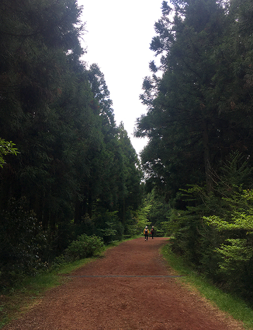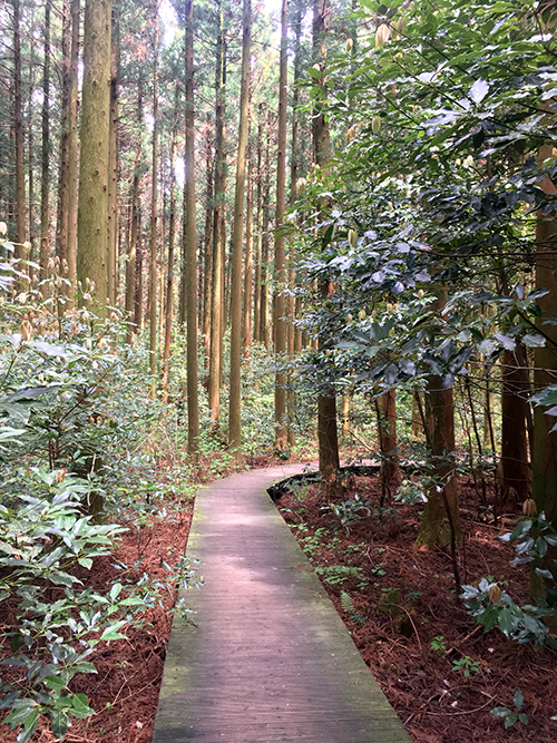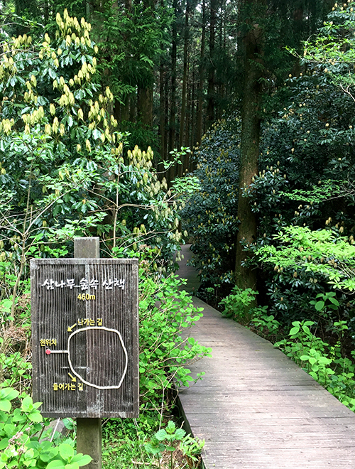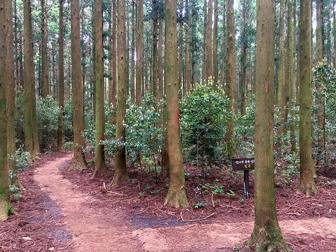 대신 그 옆에 삼나무 숲속 산택 길을 걸어보기로 했어요.