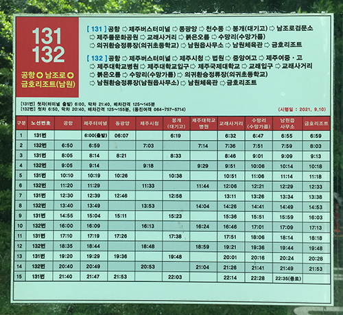 그리고 또 다른 선택지의 버스로는 131번, 132번이 있는데요. 배차나 편수가 많지 않습니다.