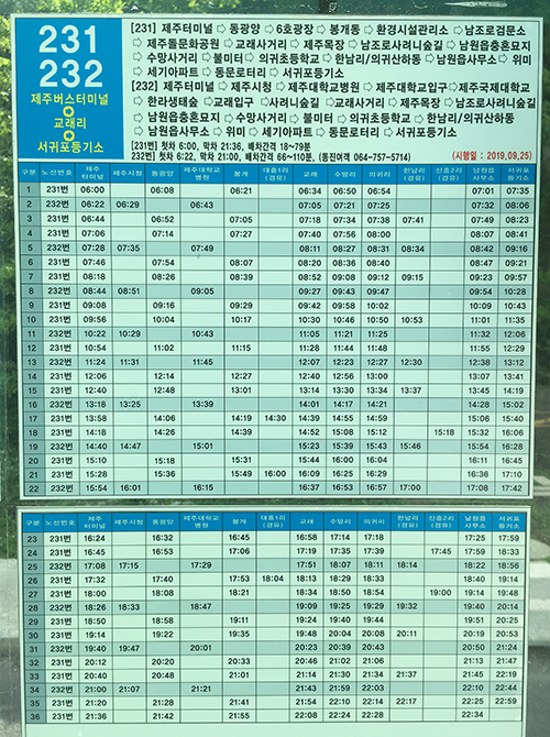 이 버스의 경우 남원까지 가기 때문에 서귀포시청 제 1청사러 가려면 남원에서 다른 버스로 갈아타야 합니다. 하지만 남원에 잦은 배차의 외곽버스가 다니기 때문에 일단 남원까지만 나가면 선택지가 확 넓어져요.