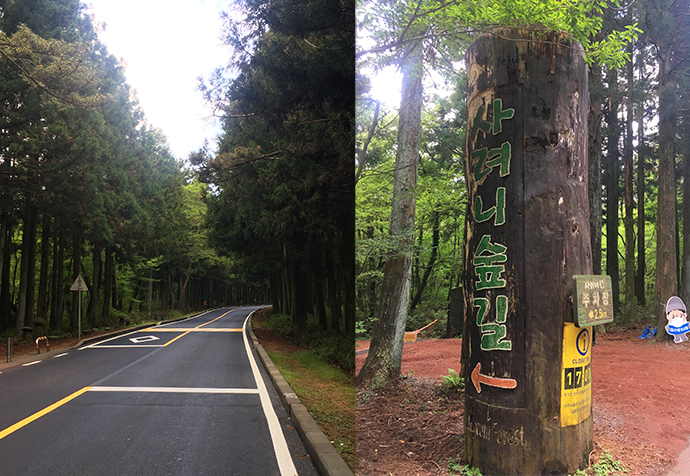 사려니숲길입구(남조로)쪽이 버스편도 많고, 앞에 먹을 것이나 주차 공간도 조금 있어서 그쪽에서 시작하시는 분들이 많다고 하는데요.