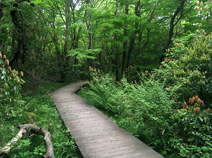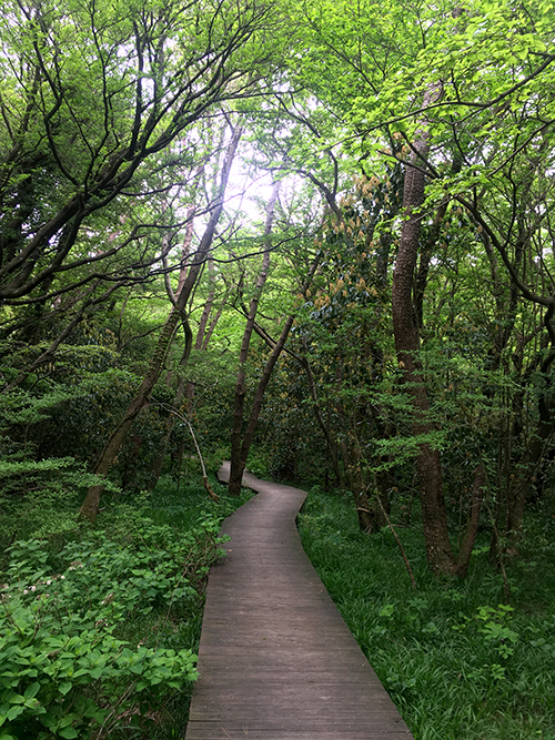 여기도 나무 데크가 있어서 굉장히 걷기 편했는데요. 굉장히 길쭉한 자작나무 같은 느낌의 나무들이 있어서 운치가 있더라구요.