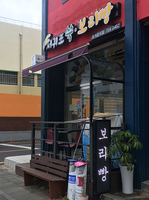 숙소로 돌아와서 군것질 거리를 사려고 멀리 위치한 홈플러스를 다녀오다가 발견한 나름 유명한 동네 쑥빵집.