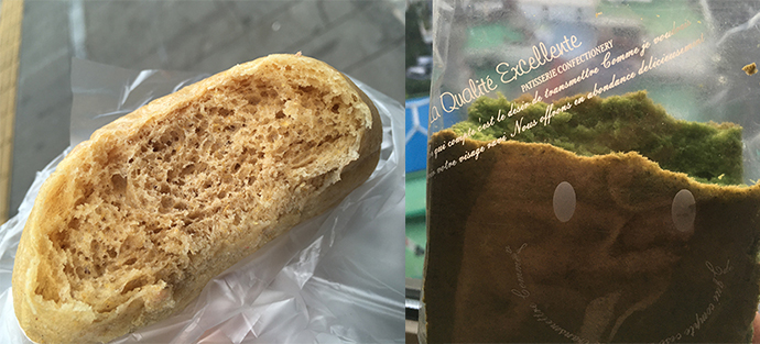 아쉬운대로 남은 보리빵과 쑥카스테라를 집어왔습니다. 가격이 진짜 저렴했어요. 보리빵은 앙고가 없어서 그냥 구수한 빵맛이였구요. 쑥카스테라는 은은한 쑥향맛이 나서 맛있었습니다.