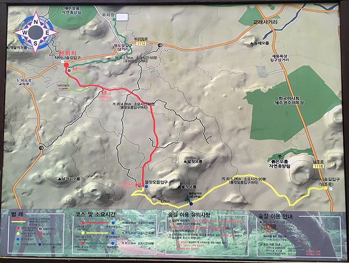 물찻오름이 있는줄도 와서 알게 되었지만, 막상 못 올라간다니 조금 아쉽더라구요. 하지만 지도를 보니 코스가 만만치 않습니다.😓
