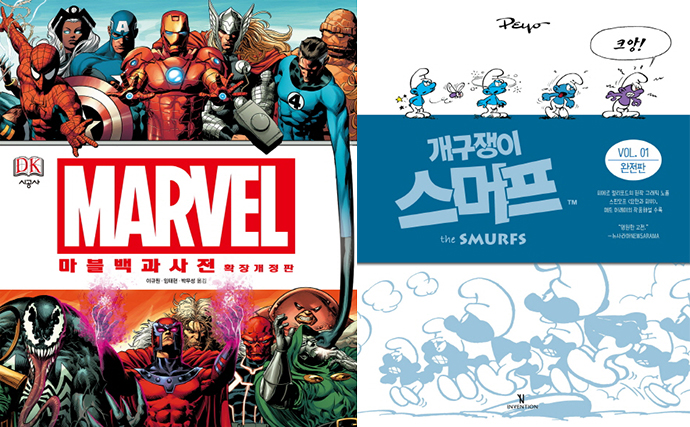 좀 더 정적이고 소설처럼 글자가 많고, 그림은 다소 예술적인 느낌이 강조되는 경향이 있는데요. 보통 미국이나 유럽권에서 자주 사용되는 형태의 만화입니다. 유명한 작품으로는 마블이나 스머프를 들 수 있습니다.