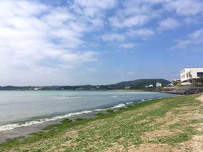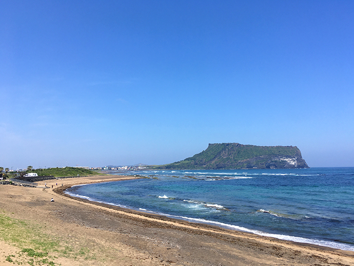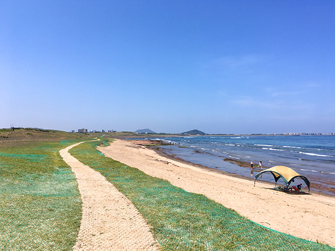 드디어 도착한 광치기 해변. 계속 걸어오며 봤던 바다라 감흥은 덜했지만, 뭔가 목표치에 도달했다는 것에 괜시리 뿌듯하네요. 섭지코지 입구 버스정류장부터 이곳까지...대략 3~4시간 걸은 것 같아요.(중간에 쉰 것도 포함)