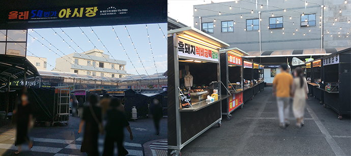 숙소로 가기 위해 항상 거치는 매일올레시장. 걷다가 우연히 새로운 곳을 발견했는데요. 올레 58번가 야시장이라고 이렇게 숨겨진 공간이 있더라구요. 사실 시장이 워낙 커서 어느 쪽인지는 모르겠어요.