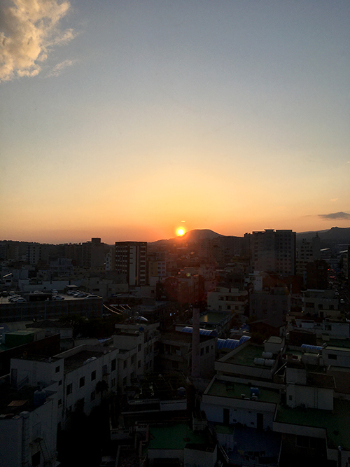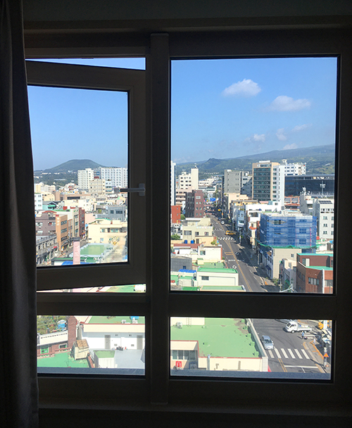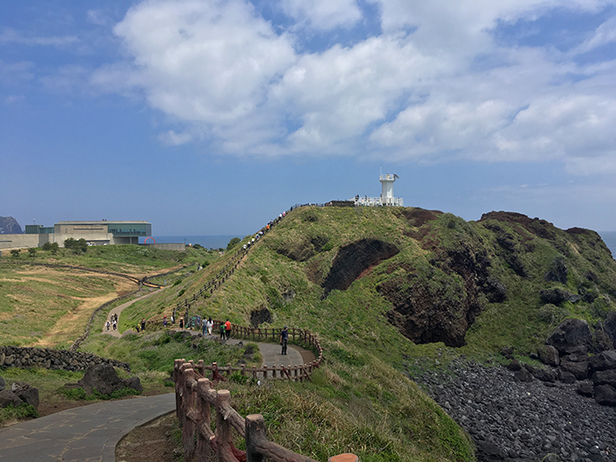 저 멀리 성산일출봉도 보이고, 멋드러진 건물도 보입니다. 확실히 오르니 아주 경치가 최곱니더~!!👍