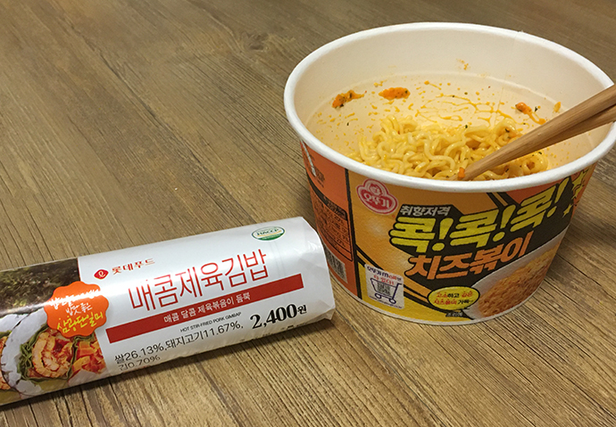 꽤 많이 걸었던터라 지쳐서 편의점에서 저녁을 해결합니다. 역시 밤에 숙소에서 맛난 거 먹으면서 쉬는 게 꿀 인듯.😆