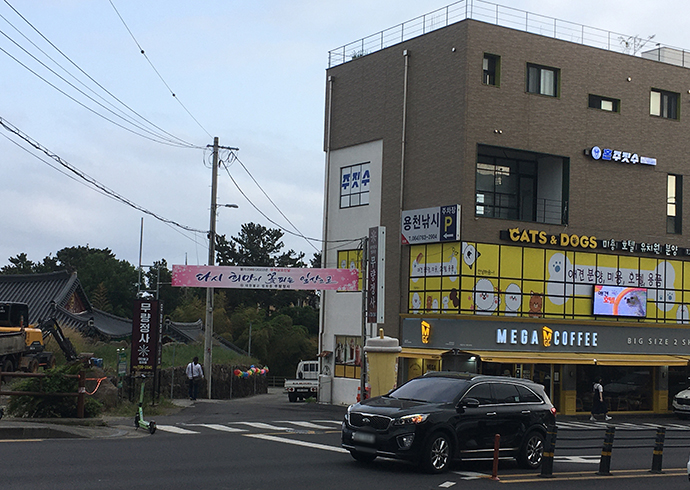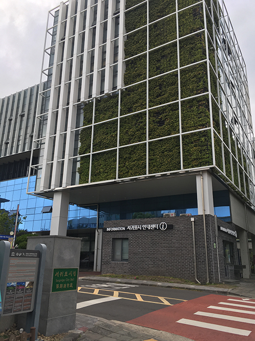 매일올레시장에서 위쪽 교차로를 넘어가면 이렇게 서귀포 안내센터를 만날 수 있는데요.