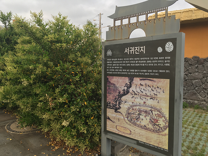 드디어 서귀진성 도착. 알고 보니 저 노란 건물이였는데요. 옛날모습은 사라지고 현재는 작은 터만 남았더라구요. 확인해보니 주차장으로 이용될 뿐 별달리 볼건 없어서 빠르게 스쳐갑니다.
